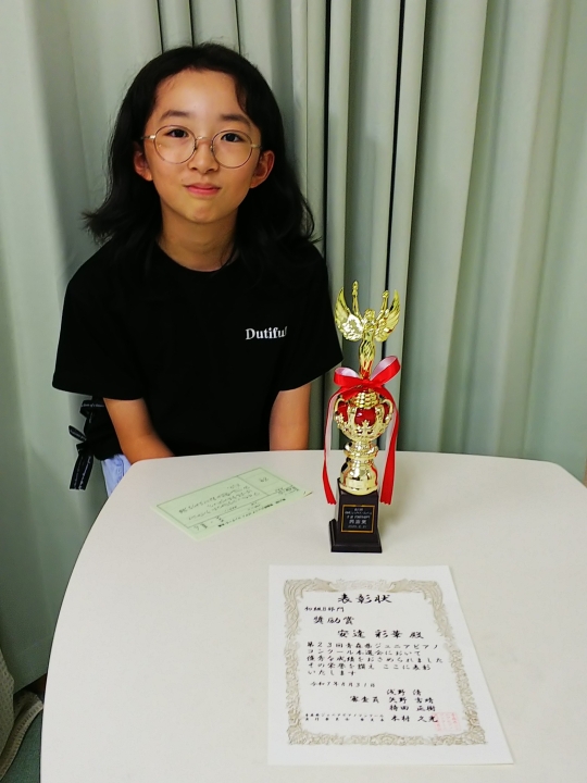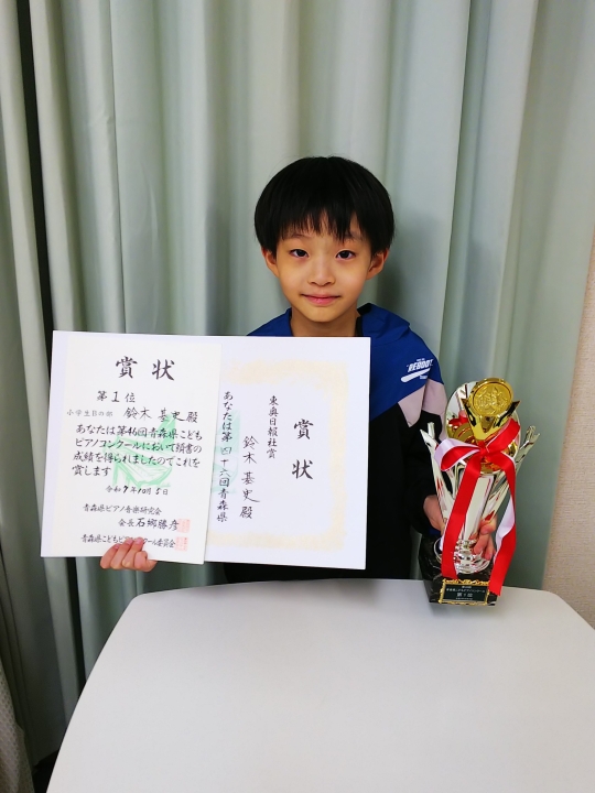 小学生Bの部 第1位、及び東奥日報社賞第23回青森県ジュニアピアノコンクール